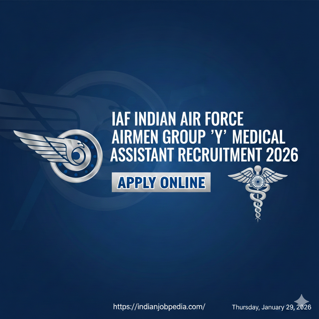 Indian Air Force (IAF) has released the official notification for Airmen Group Y (Medical Assistant) Recruitment 2026 – Intake 01/2027.